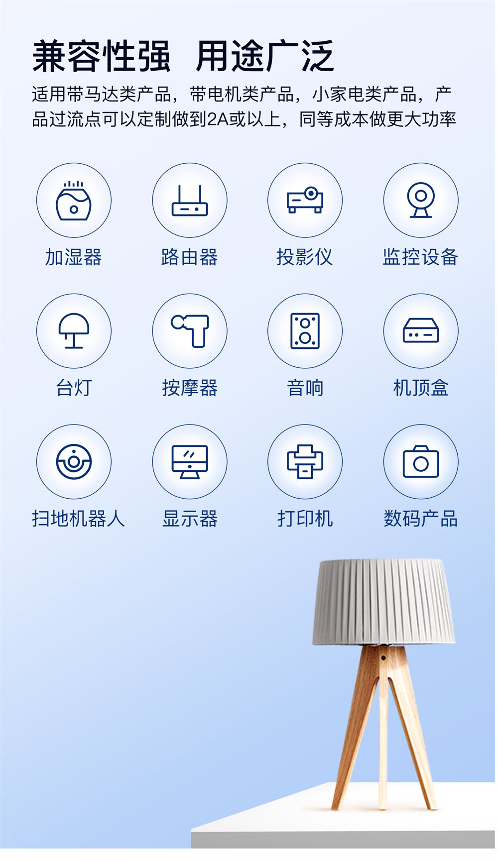 产品广泛应用于家用电器/美容设备/移动设备/机顶盒/POS 机